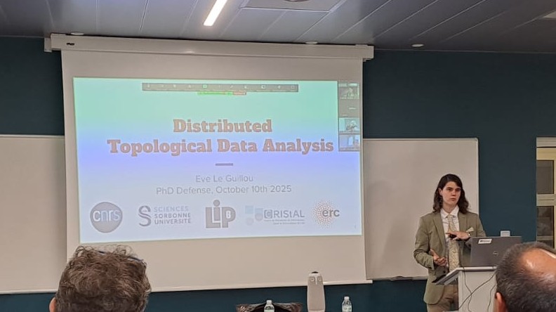 Distributed Topological Data Analysis Eve Le Guillou PhD in Computer Science (2025) Committee: Bruno Raffin (President of the Jury), David Coeurjolly (Reviewer), Tom Peterka (Reviewer), Isabelle Bloch (Examiner), Federico Iuricich (Examiner), Christophe Calvin (Examiner), Pierre Fortin (Co-advisor), Julien Tierny (Advisor) Manuscript |